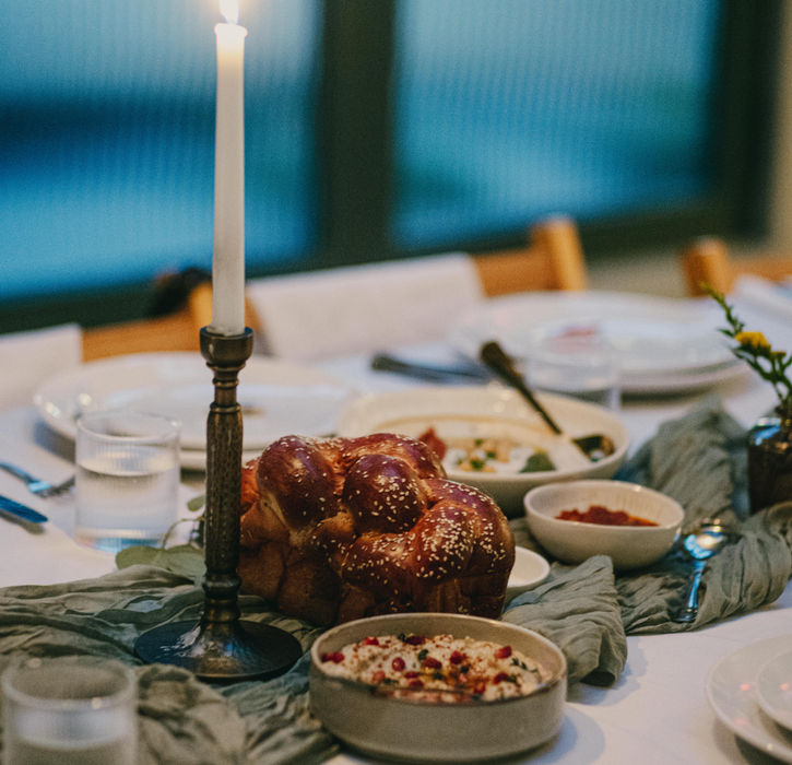 Every few weeks, we gather to welcome Shabbat the Moabet way — with candlelight, wine, soulful food, and shared presence. We start with a traditional Kiddush and challah, then settle in for a warm, seasonal meal served family-style. Expect ambient lighting, curated playlists, and long conversations at the table. ✨